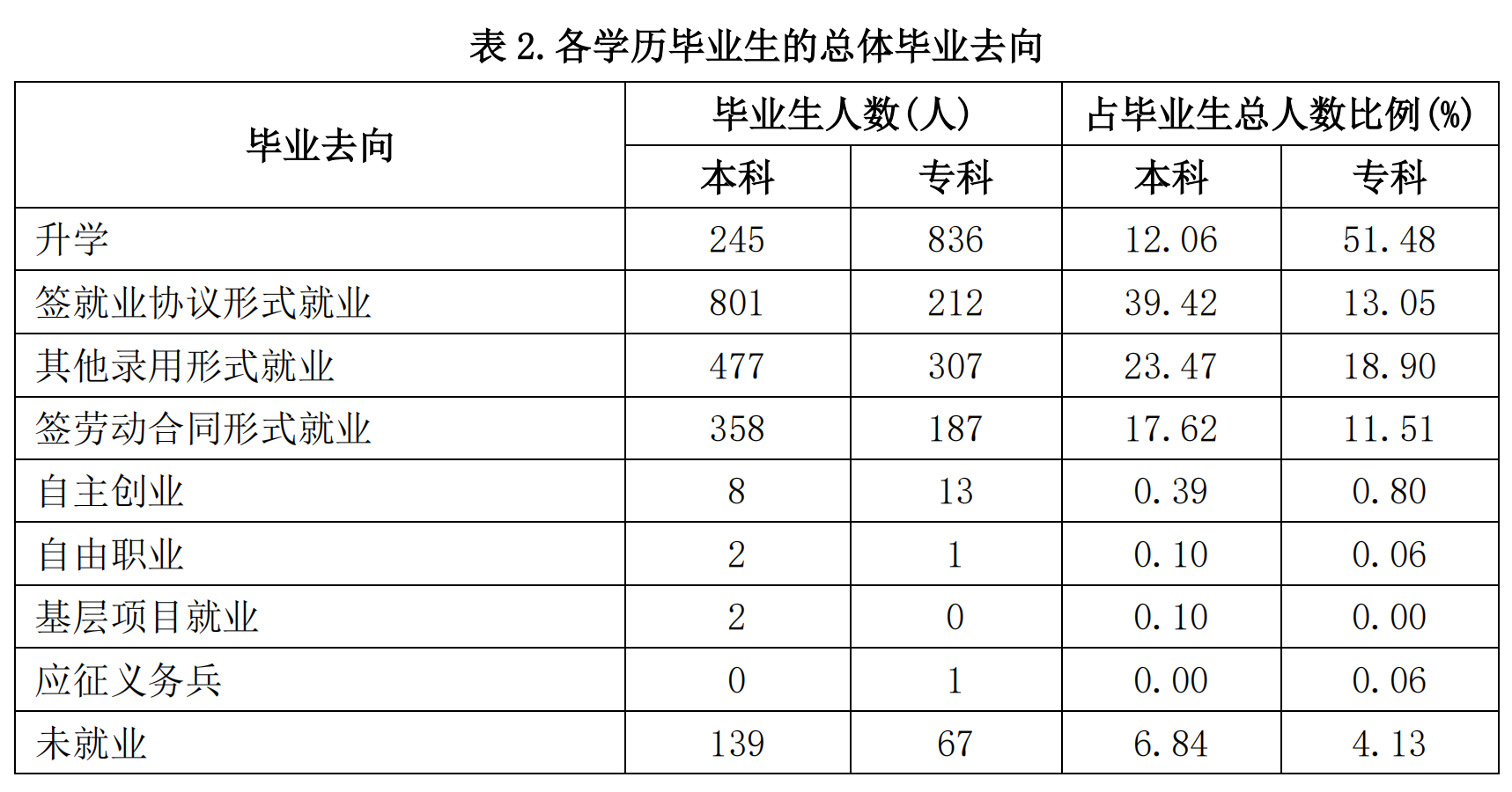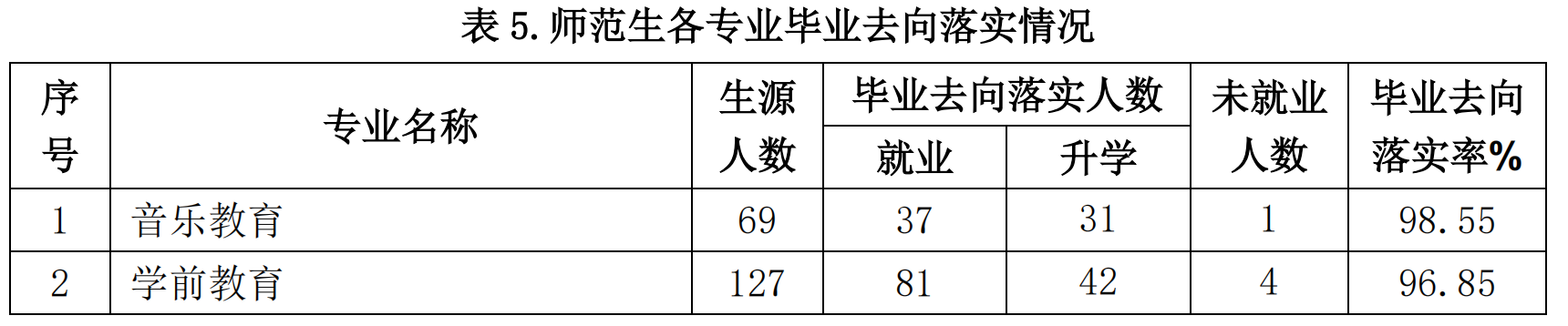 非师范本科各专业中,有 6 个专业的毕业去向落实率超过 95%,各专业毕业去向落实情况如下表所示: