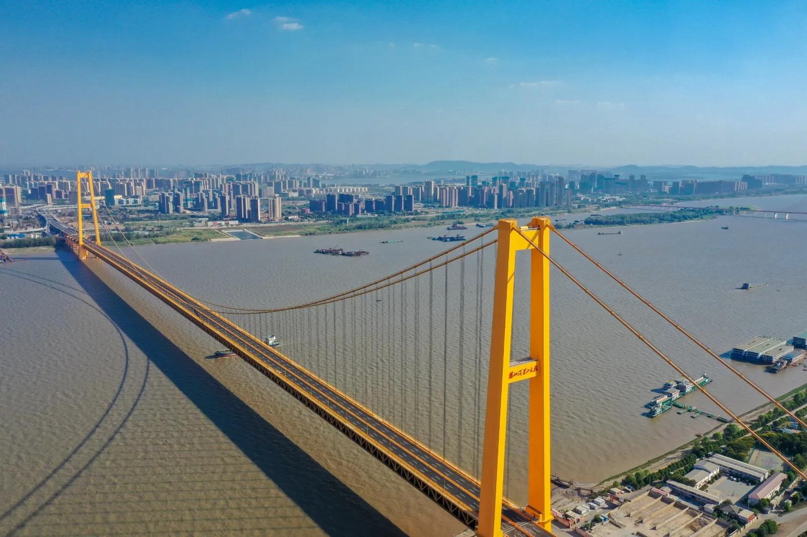 杨泗港长江大桥2019年10月8日通车运营,是武汉市区的第十座长江大桥,连接汉阳区与武昌区。桥梁主跨全长1700m,上下层桥面均为双向六车道城市快速路,是一座双层公路悬索桥。距上游的白沙洲大桥约3公里,距下游的鹦鹉洲长江大桥约3.2公里。大桥建成后,“黄色”迅速在网络刷屏,成为武汉市的城市新名片,杨泗港长江大桥实际上改写了武汉市一环线、二环线的格局,有效缓解中心城区过江交通压力。