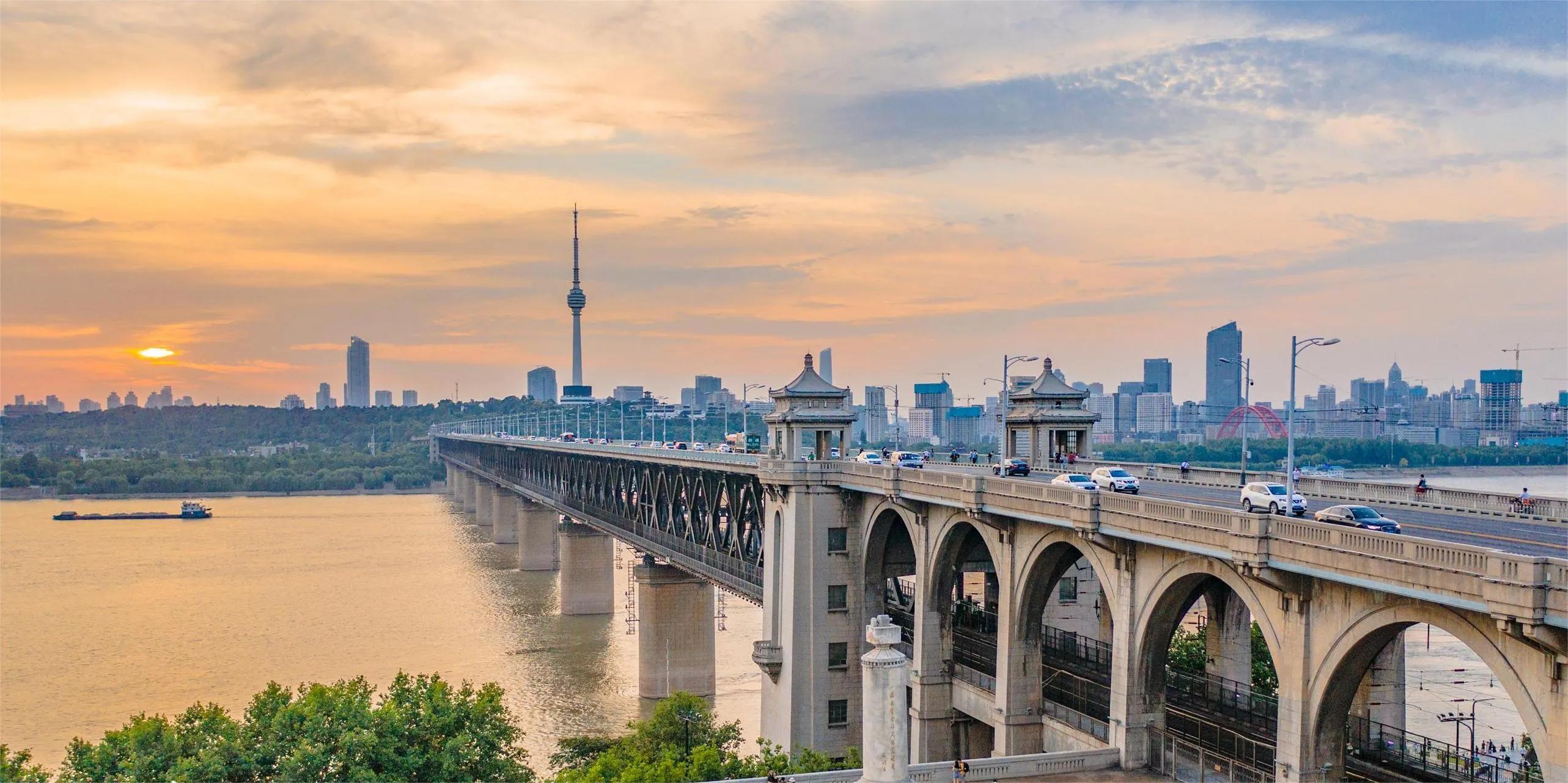 武汉长江大桥1957年10月15日通车运营,新中国成立后修建的第一座公铁两用的长江大桥,素有“万里长江第一桥”美誉。长江大桥连接汉阳区与武昌区,位于武汉市内环。主桥全长1155.5m,上层桥面为双向四车道,下层为双线铁轨,主桥为钢桁架形式。2013年入选中国全国重点保护文物,2021年被评为“武汉十大景”之一。