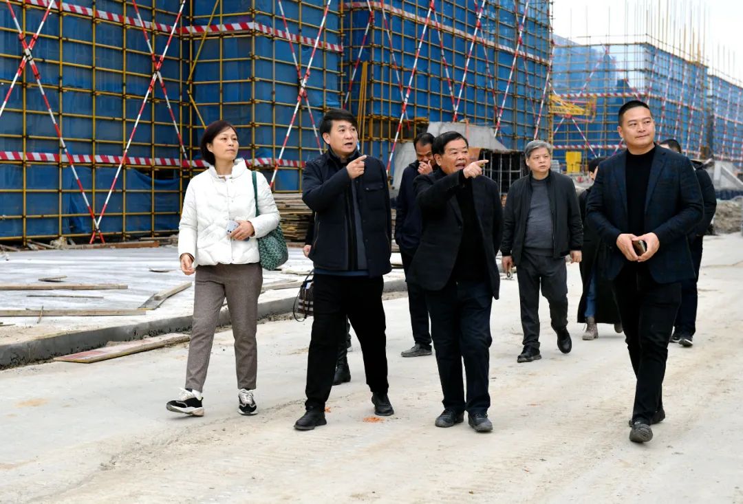 福耀集团董事长曹德旺在施工现场了解大学建设情况。