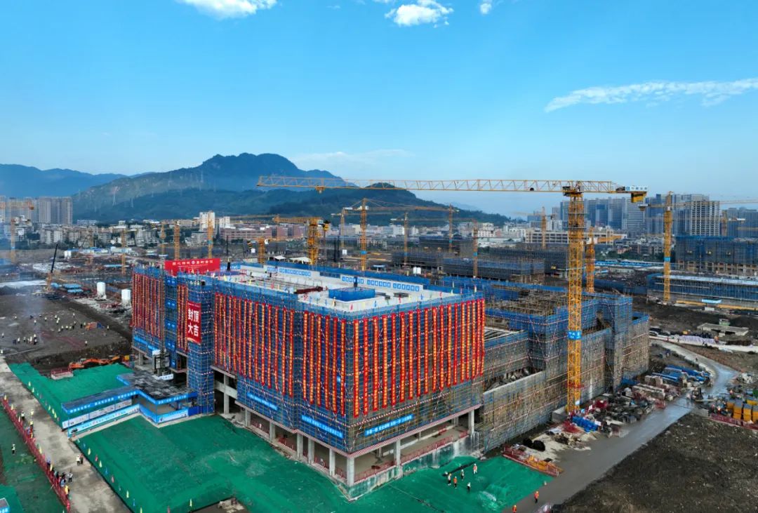 2022年11月19日,福耀科技大学(筹)首栋大楼——明德堂及行政楼主体结构封顶仪式在福州举行。图为明德堂及行政楼主体结构。图/中新