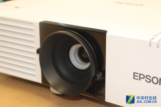 爱普生CB-L500激光投影机的调焦环位于机身的镜头上,只需轻旋调焦环即可实现1.6倍变焦操作,十分方便;另外机身还配有各种指示灯,方便用户查看机器此时的状态;机身侧面设有大面积的散热孔,方便热量散出,更好的保护机身。