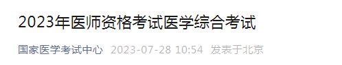最新发布!国家医学考试中心通知: 2023年医师资格考试医学综合考试将于8月18日至20日在全国举行。